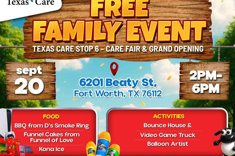 Calling everyone in Fort Worth! Join us for the Texas Care Stop 6 – Care Fair & Grand Opening on Saturday at 6201 Beaty St, Fort Worth!